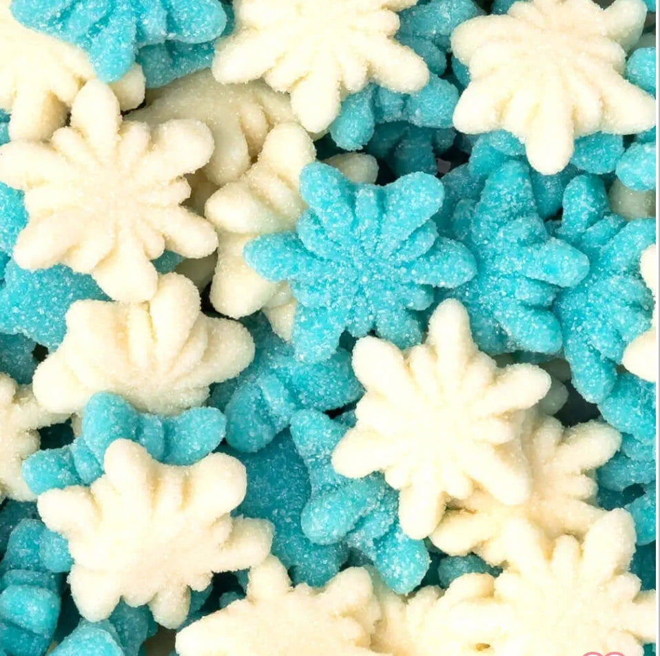 Chuche en forma de copo de nieve, en color azul y blanco.