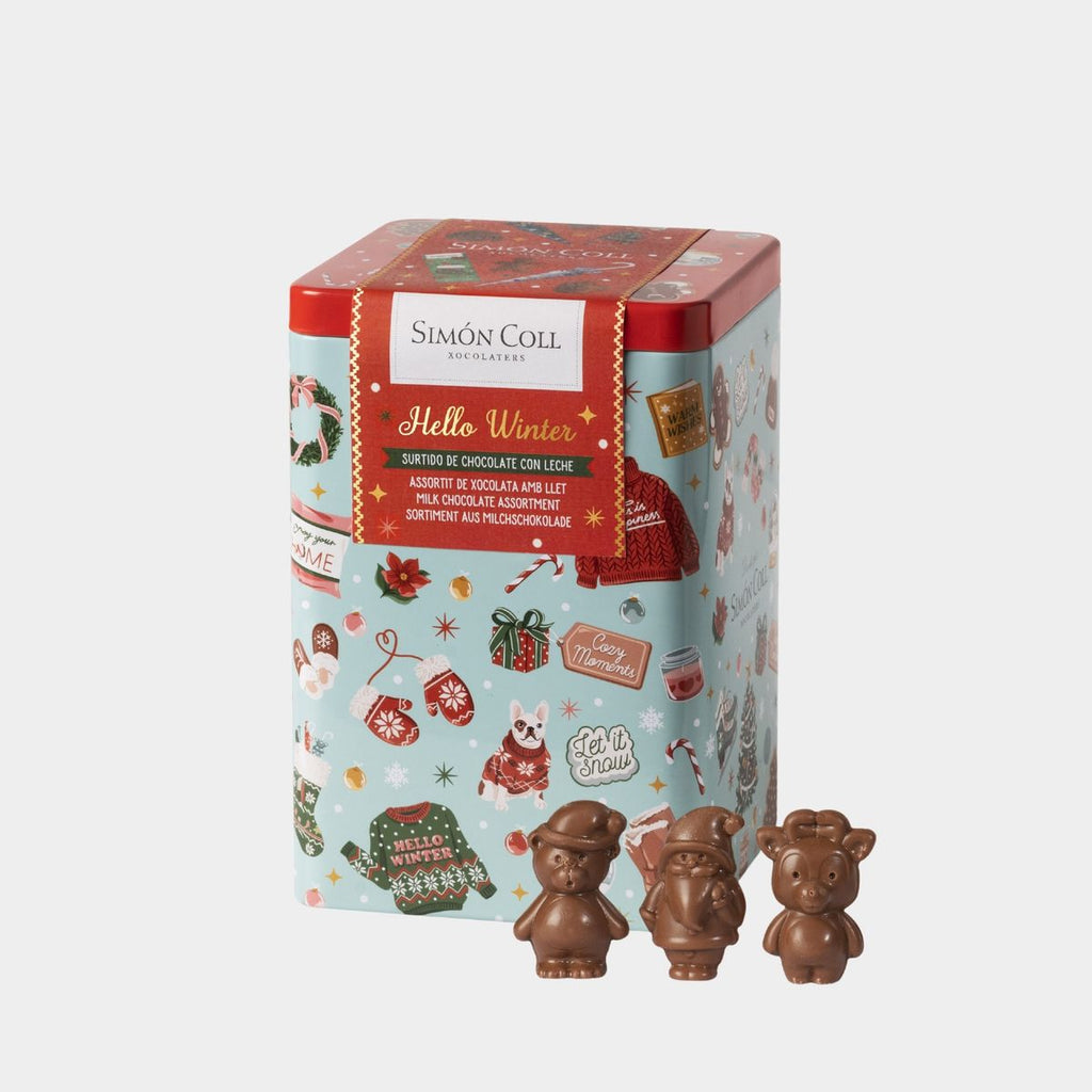 Dentro, encontrarás 6 figuras 3D huecas de chocolate con leche de 9g, 2 sombrillas navideñas de 15g y 2 chocolatinas Hello Winter, ¡perfectas para compartir o disfrutar en cualquier momento!